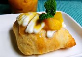 Описание рецепта — Персики в слоёном тесте с творожным кремом: